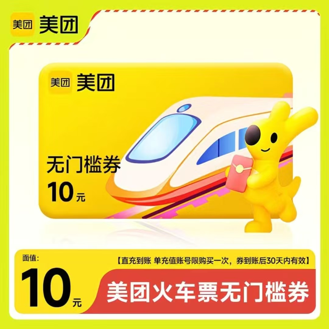 【官方直充】美团火车票无门槛券10面值