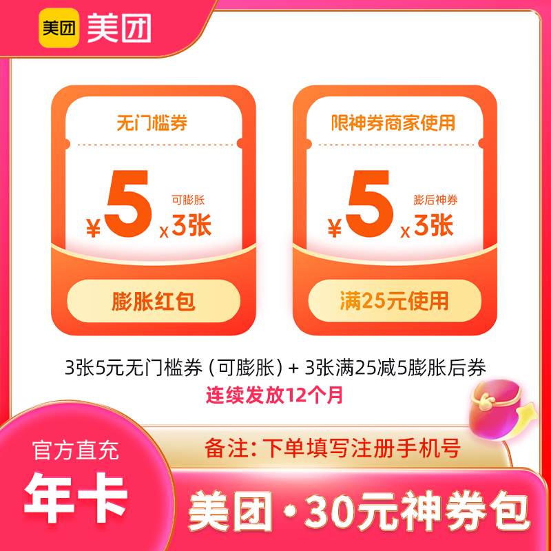 【账号直充】美团外卖神券省钱包『12个月』30元券包/月