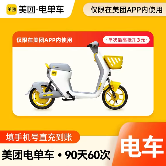 【账号直充】美团电单车骑行卡『90天 | 60次』
