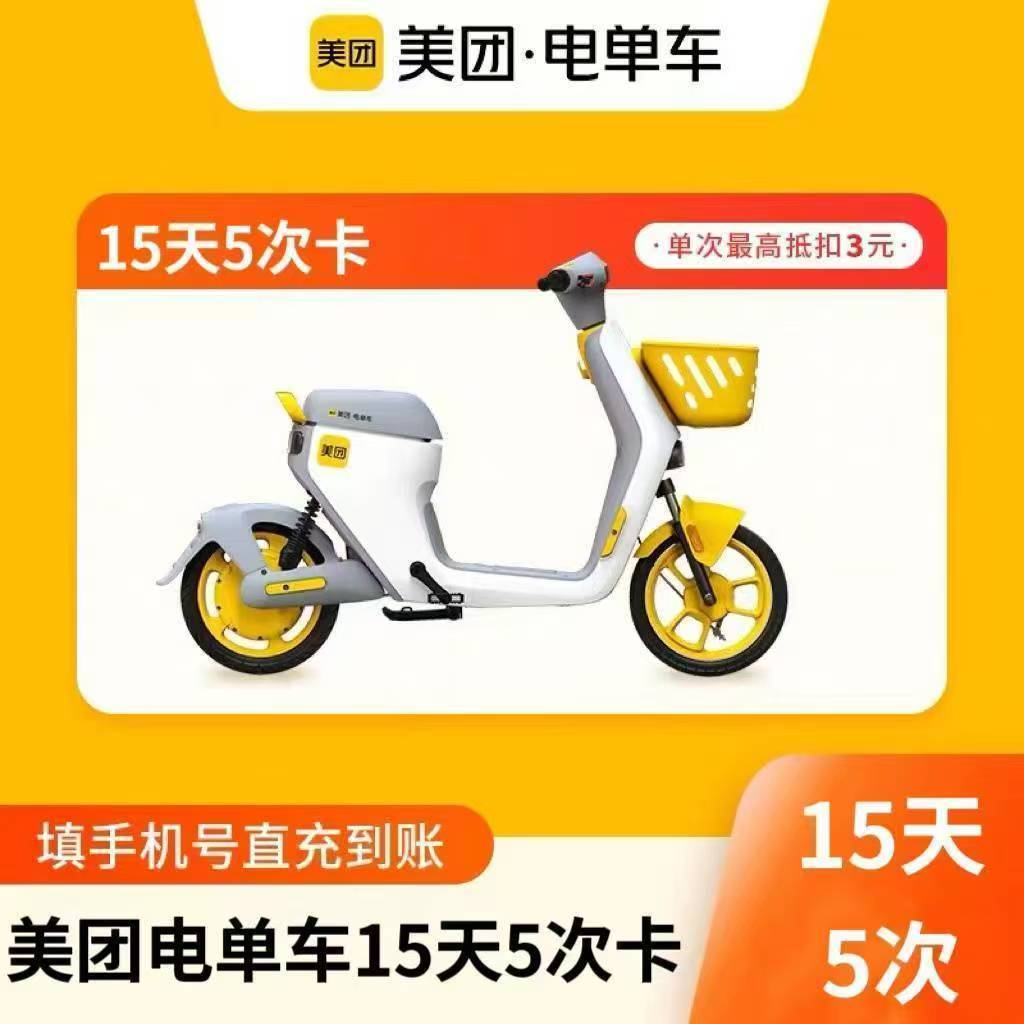 【账号直充】美团电单车骑行卡『15天 | 5次』
