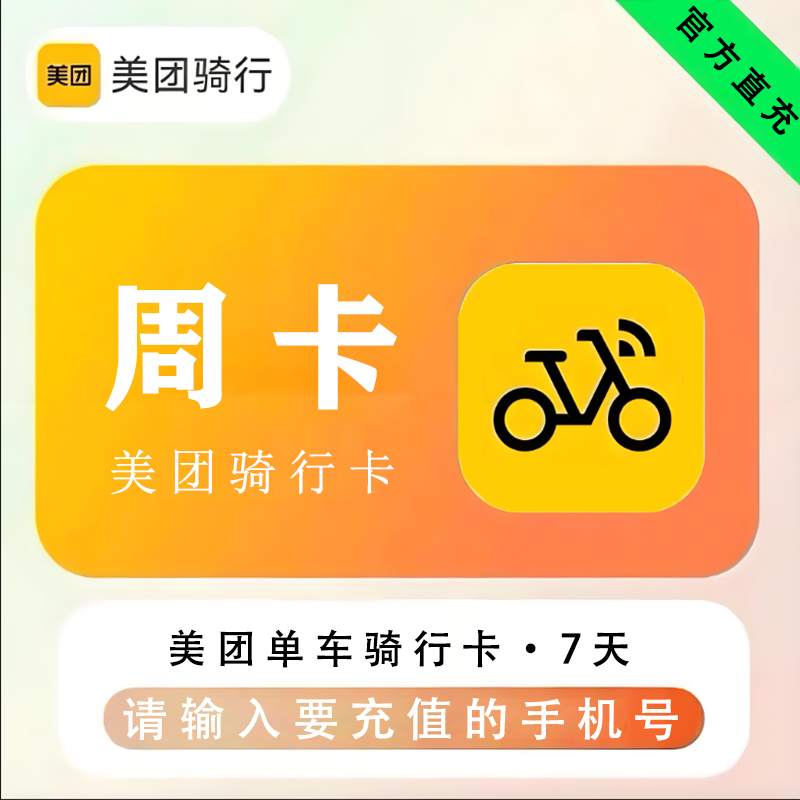 【账号直充】美团单车骑行卡『7天 | 5次』