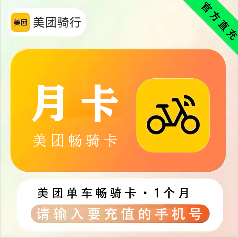 【官方直充】美团单车畅骑卡1个月--日限2次