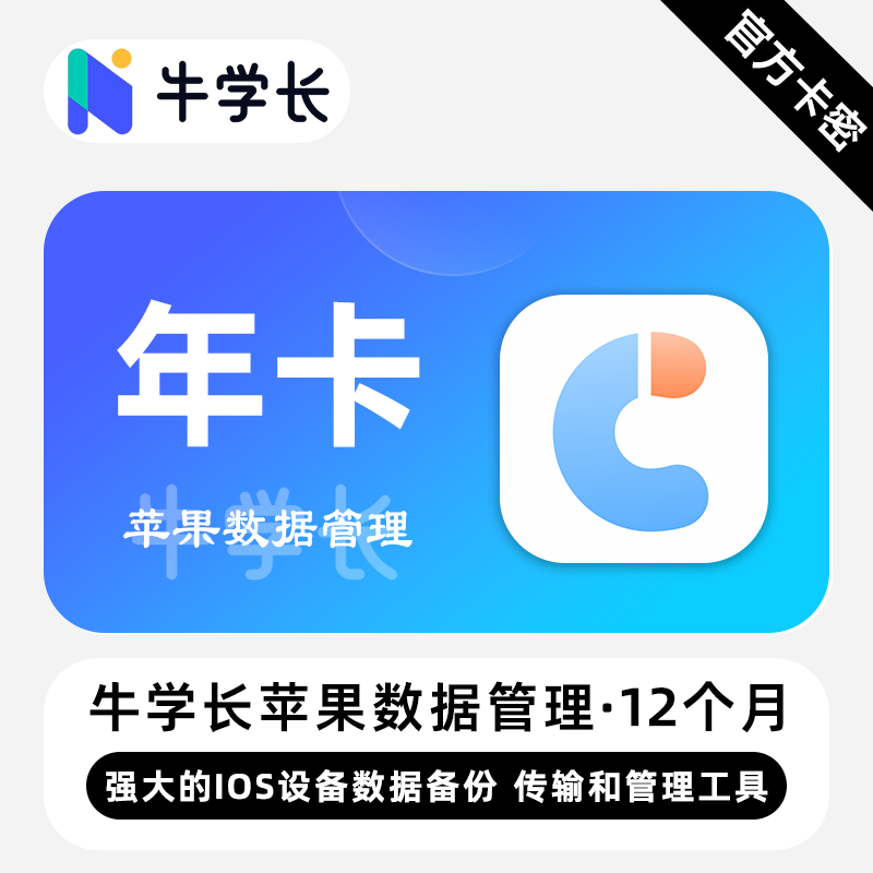 【官方卡密】牛学长苹果数据管理工具『年卡 | Win版本』限价118.4元