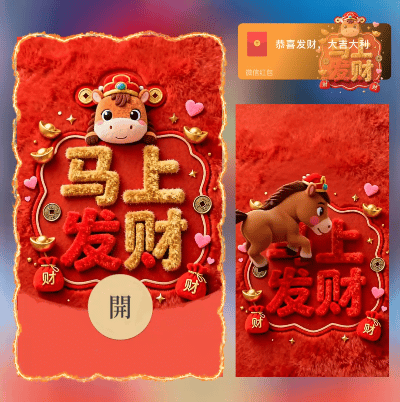 【卡密兑换】微信红包封面『马年暴富 指谁谁发财/bb』官方卡密丨端内兑换丨24小时自助提卡!