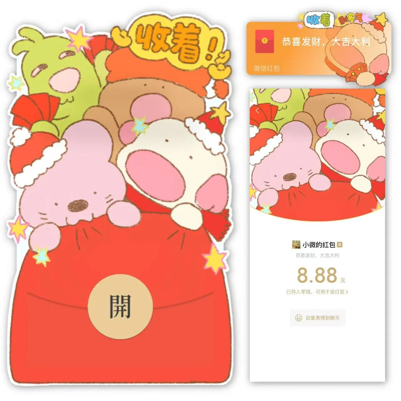 【卡密兑换】微信红包封面『马年小熊兔兔送福/新款动态/音乐/xliu』官方卡密丨端内兑换丨24小时自助提卡!