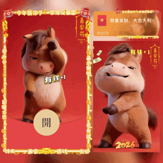 【卡密兑换】微信红包封面『2026有钱暴富/搞笑跳舞马/bao』官方卡密丨端内兑换丨24小时自助提卡!