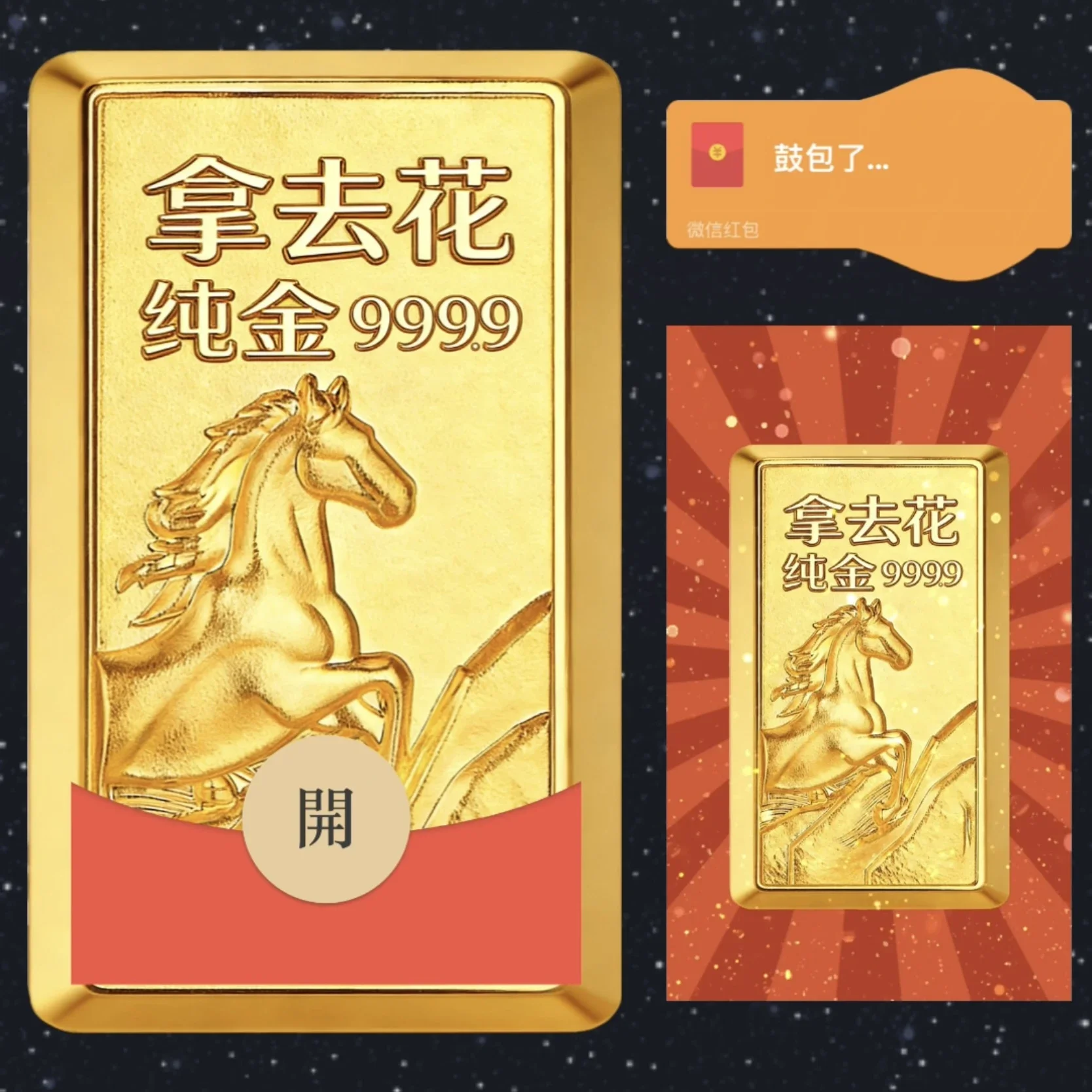 【卡密兑换】微信红包封面『马年金砖/拿去花纯金999.9 /bz』官方卡密丨端内兑换丨24小时自助提卡!