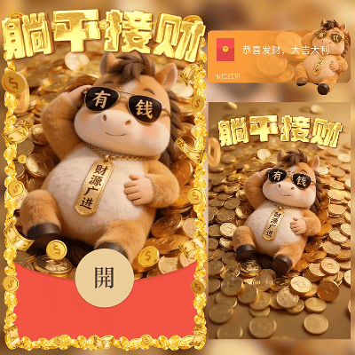 【卡密兑换】微信红包封面『躺平接财/新年快乐/马年暴富发财/ln』官方卡密丨端内兑换丨24小时自助提卡!