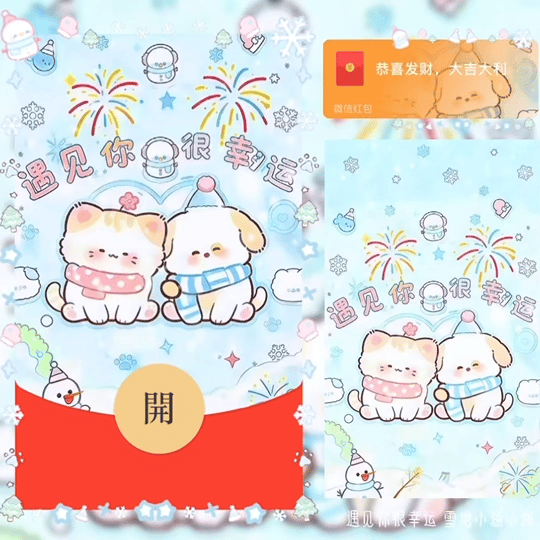 【卡密兑换】微信红包封面『情侣小猫小狗躺雪地/新款动态/音乐/xliu』官方卡密丨端内兑换丨24小时自助提卡!