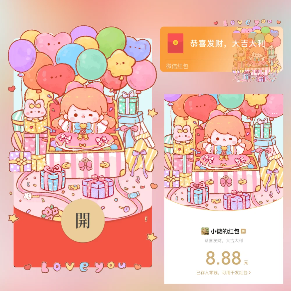 【卡密兑换】微信红包封面『love you』官方卡密丨端内兑换丨24小时自助提卡!