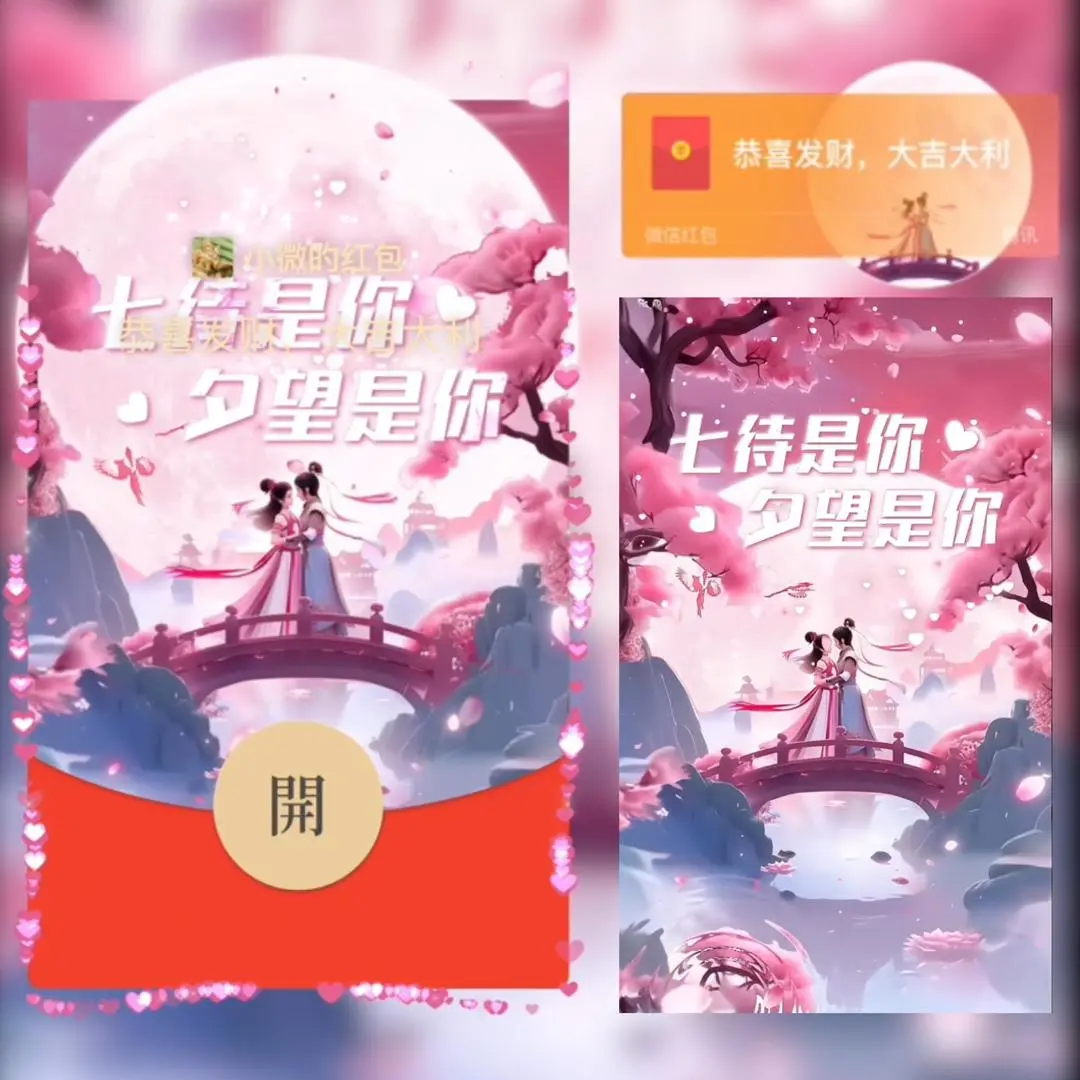 【卡密兑换】微信红包封面『七待已久 夕望是你/七夕快乐/新版动态/xn』官方卡密丨端内兑换丨24小时自助提卡!