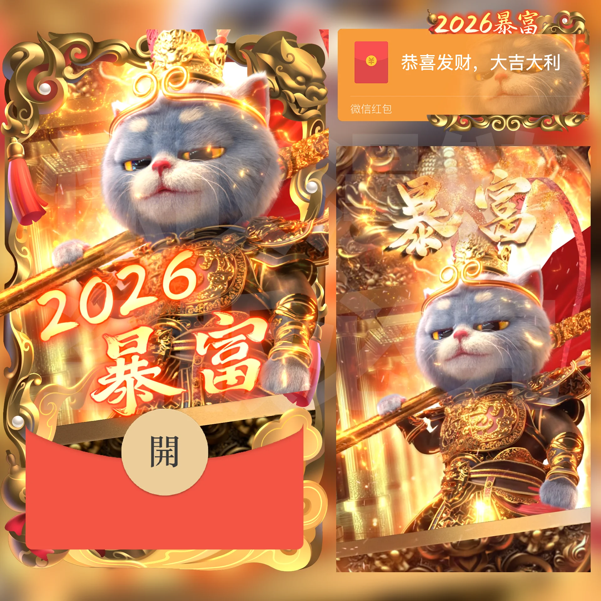 【卡密兑换】微信红包封面『泼天富贵2026/斑布猫』官方卡密丨端内兑换丨24小时自助提卡!