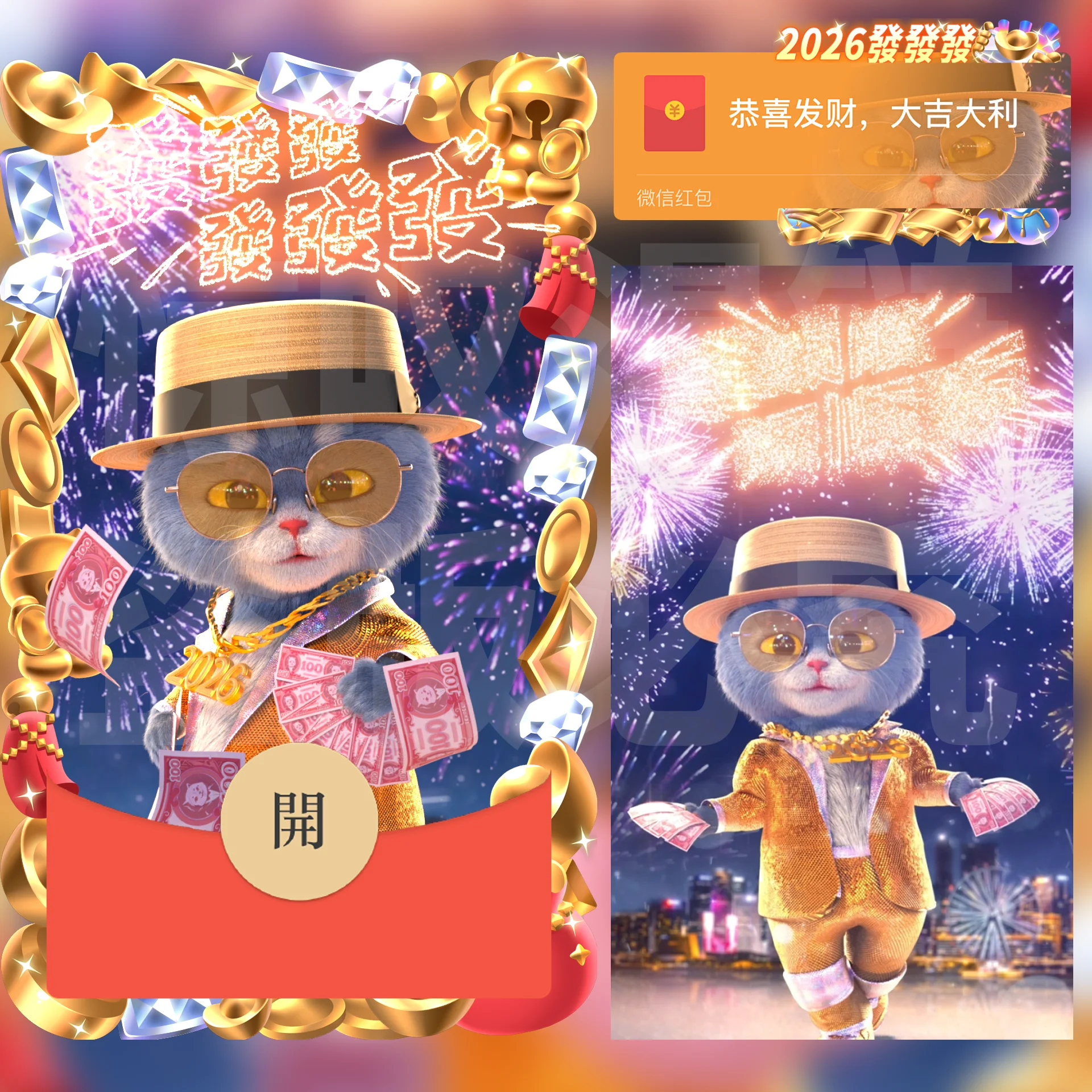 【卡密兑换】微信红包封面『2026发财/斑布猫』官方卡密丨端内兑换丨24小时自助提卡!