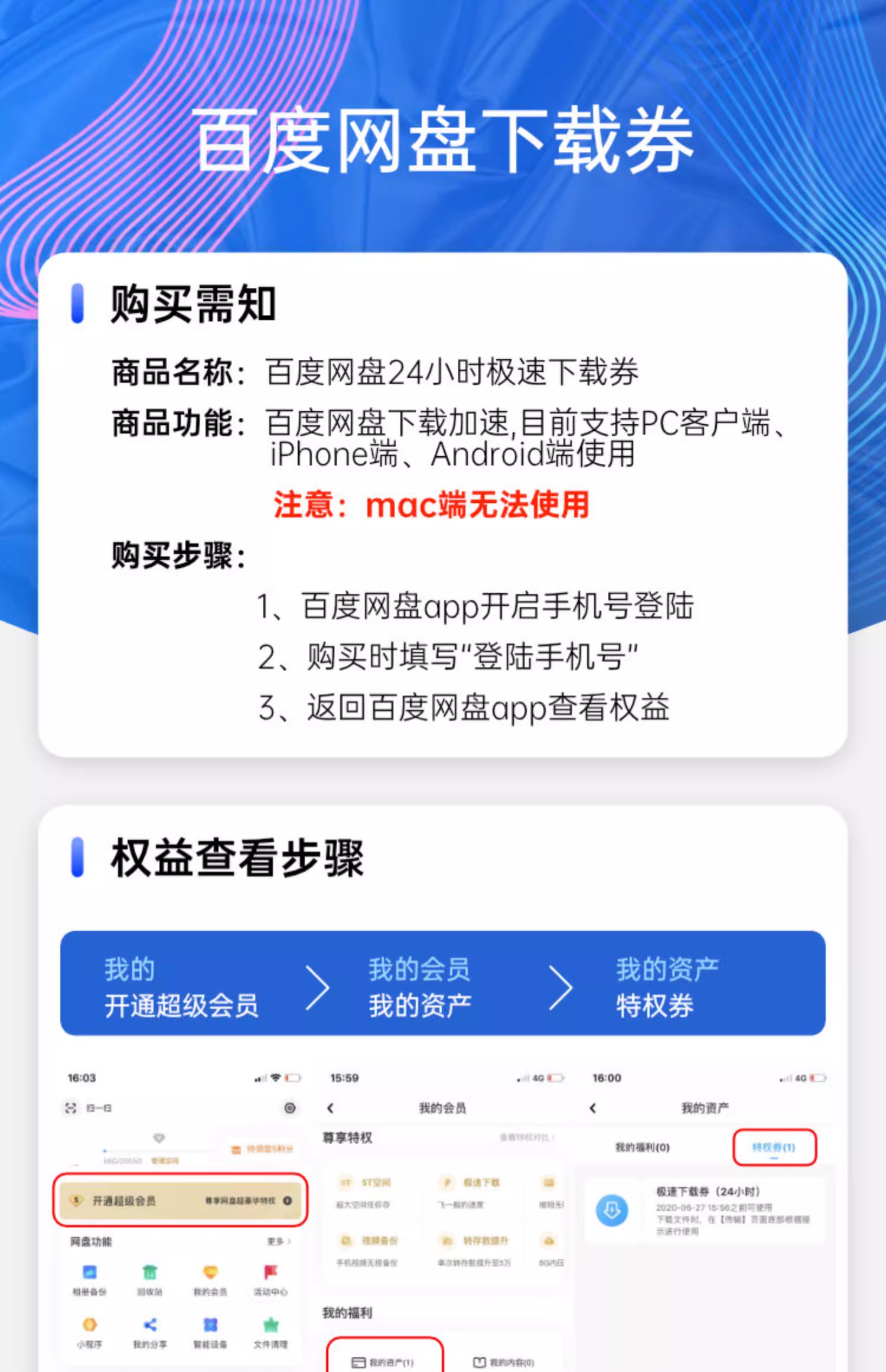 【账号直充】百度网盘下载券『24小时』仅闲鱼