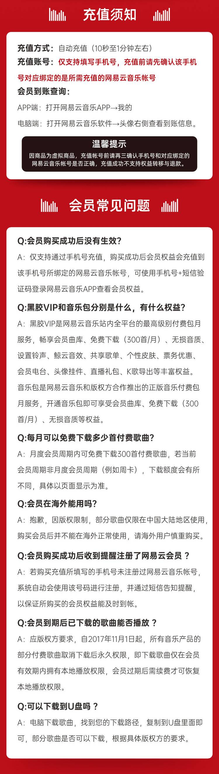 【账号直充】网易云音乐畅听VIP会员『1个月』