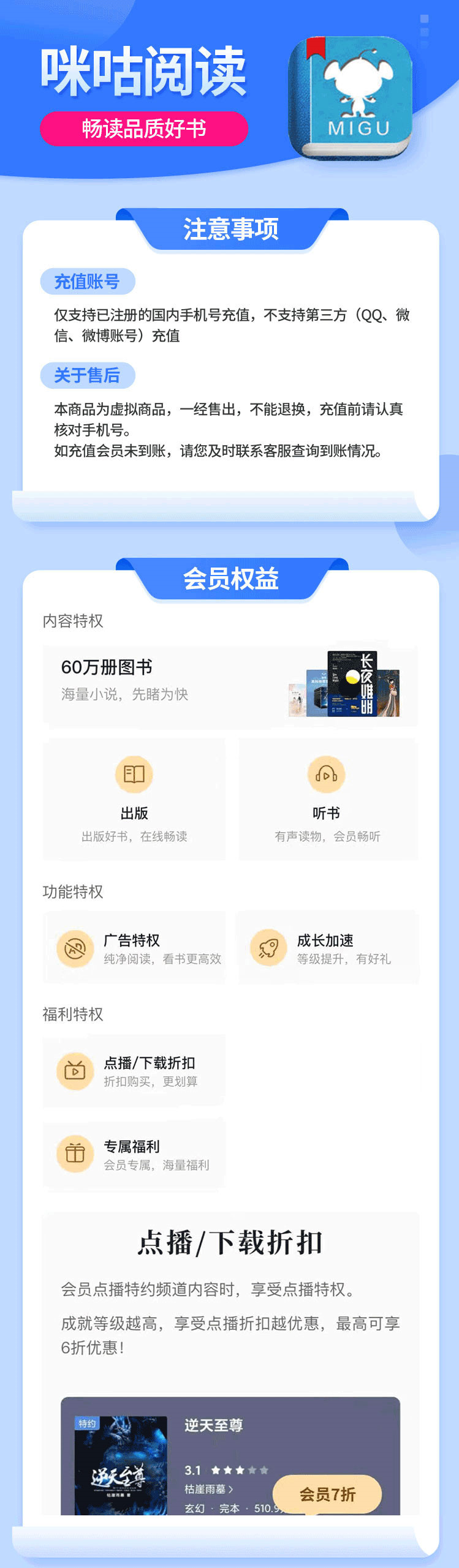 【官方直充】咪咕阅读畅享会员3个月