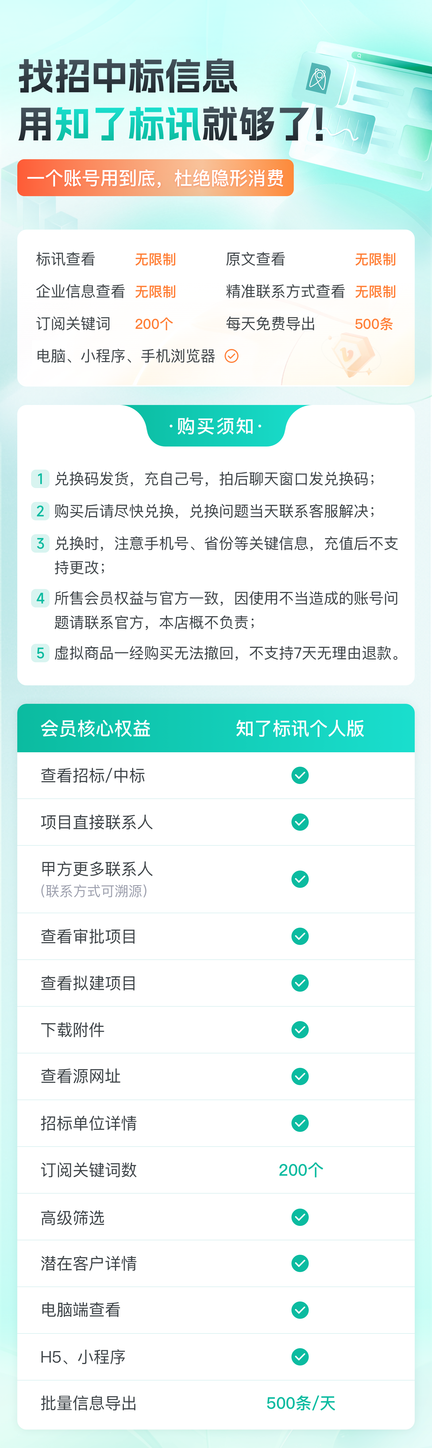 【官方卡密】知了标讯个人版『24个月 | 单省会员』限价269