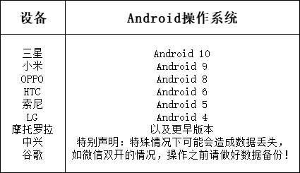 - 支持三星、小米OPPO、HTC、索尼、LG、摩托罗拉、中兴、谷歌等安卓手机和平板电脑